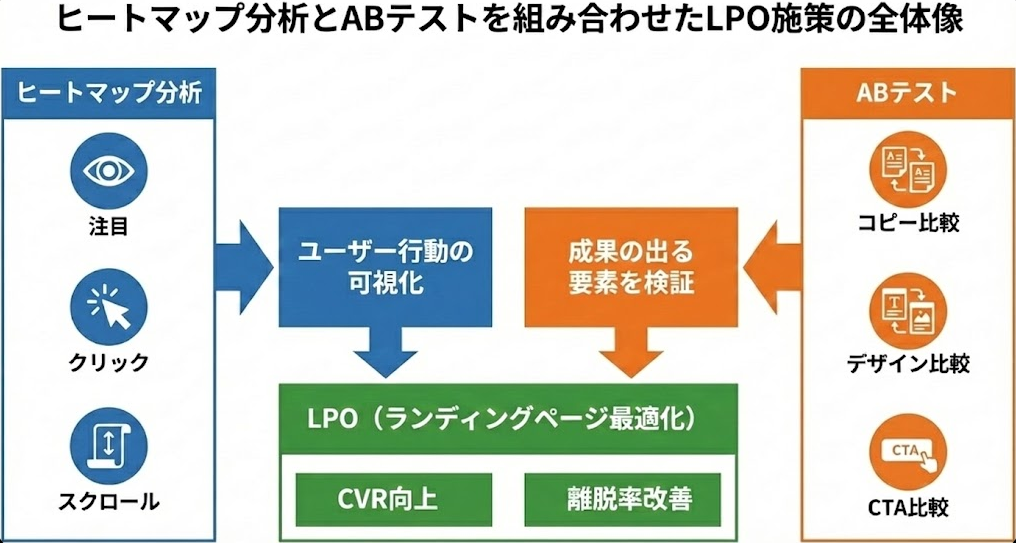 これらの最適化を行うために、ヒートマップ分析とABテストを組み合わせて活用することが効果的です。