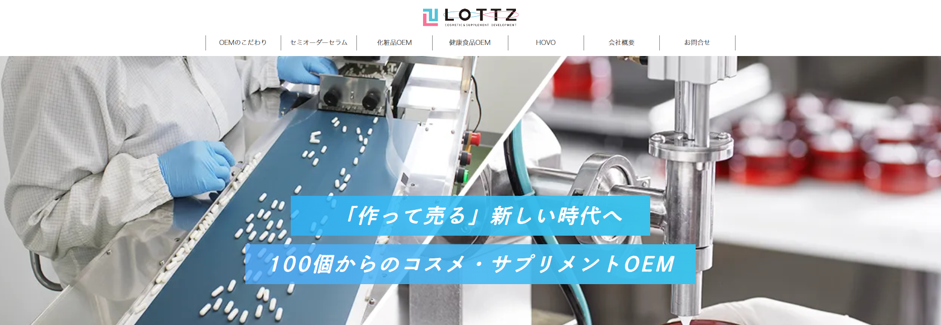 | LOTTZ | 処方×デザイン×資材を一体提案。100個〜でD2C立上げを加速。 | 企画〜容器〜販促まで丸ごと支援。スピード試作でPDCAが回しやすい。 | 化粧品 | スキン/ヘア、トータルプロデュース | 100個〜 |