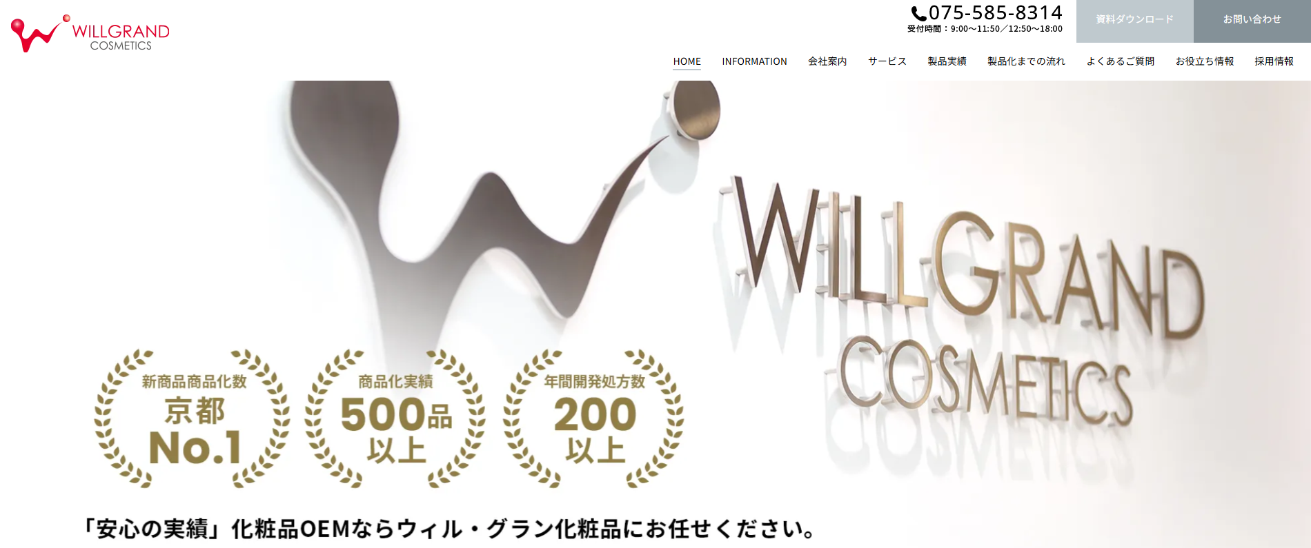 | ウィル・グラン化粧品 | スキンケア中心に500本〜の小ロットを明記。サロン/クリニック案件に強い。 | オープンラボ等の連携で“現実解”を素早く提案。 | 化粧品 | スキンケア、ヘアケア | 500本〜 |