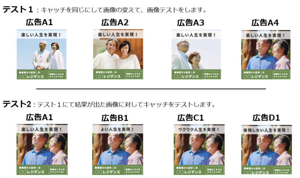 (前提として、過去の経験値をふまえたクリエイティブも同時にテストします。)