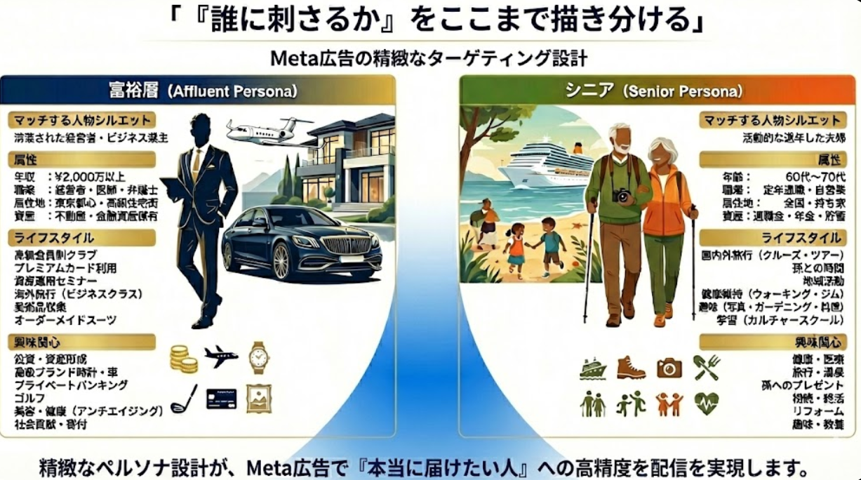 Meta広告は誰でも配信できますが、「誰に見せるか」をどこまで具体的に設計できるかで成果は大きく変わります。